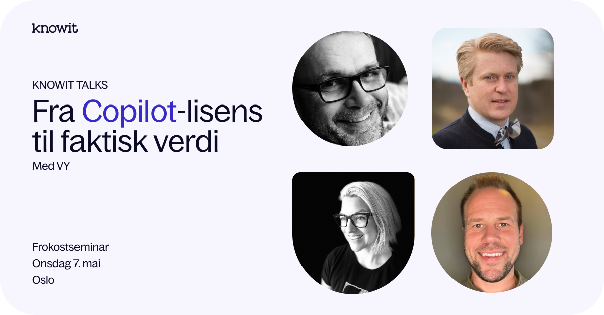 Hvordan få faktisk verdi ut av Copilot – og ikke bare flere lisenser i omløp? Bli med på frokostseminar og hør hvordan Vy, i samarbeid med Knowit, tok en bevisst og målrettet tilnærming til AI-verktøy i arbeidshverdagen – og oppnådde imponerende resultater.